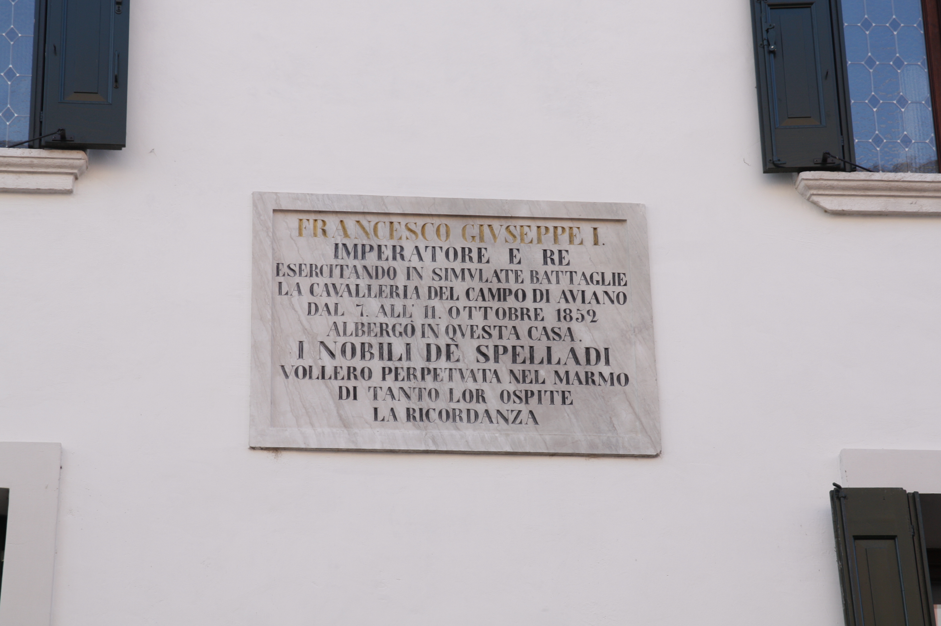 Un’iscrizione sulla facciata, voluta dai nobili Spelladi, ricorda che nel 1852 vi fu ospite per cinque giorni Francesco Giuseppe I Imperatore d’Austria.