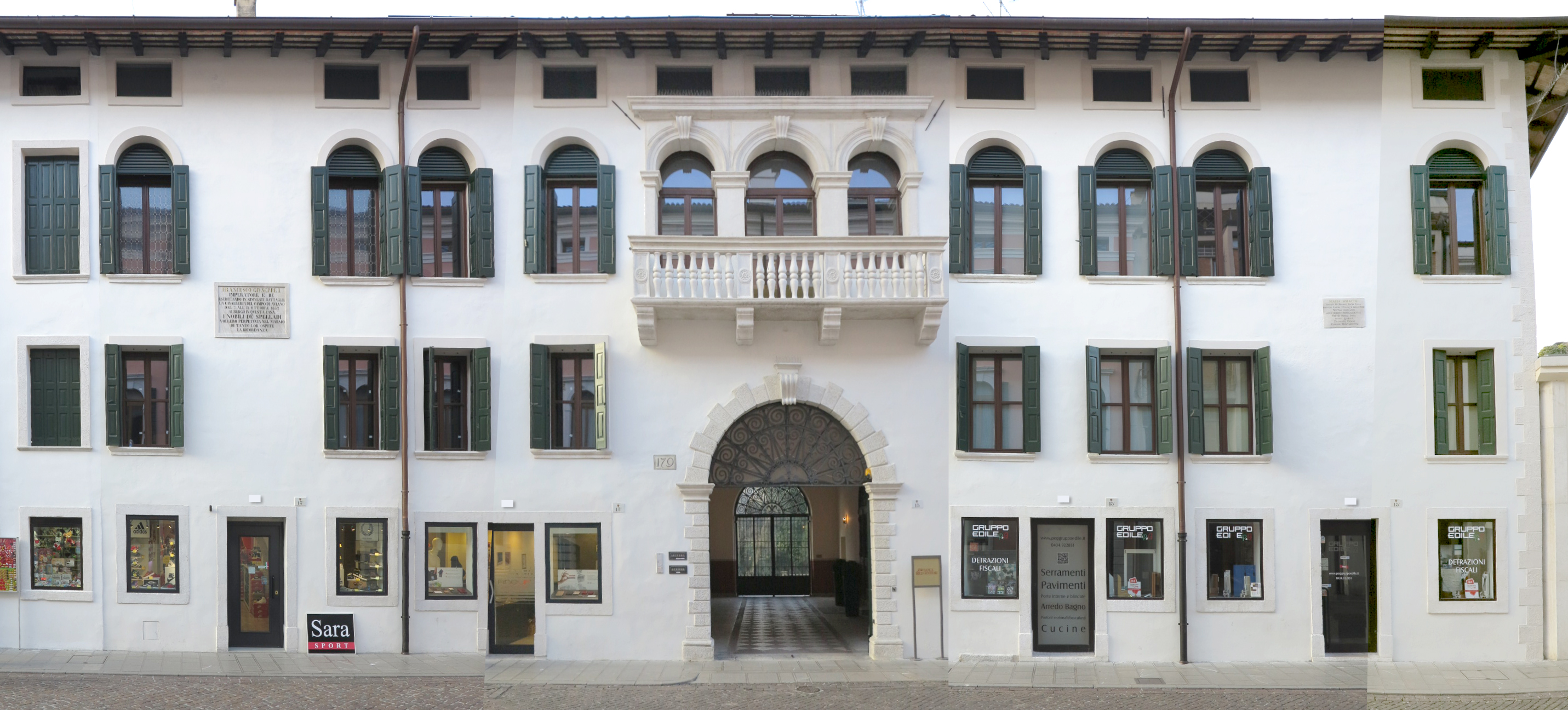 Il palazzo, che ora appartiene ai Conti di Porcia, risale come impianto al cinquecento mentre la successiva sopraelevazione e trasformazione in residenza nobiliare è databile all’inizio del settecento.