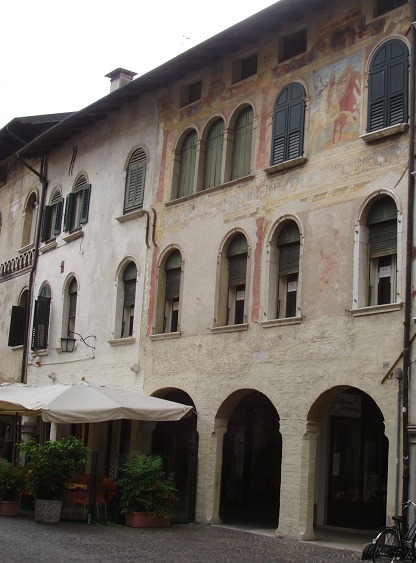La facciata di palazzo MANTICA ottenuto dall’unione di due edifici, presenta al secondo piano nell’ampio spazio tra le finestre, una scena di combattimento tra due cavalieri da identificarsi con Valerio Corvino che uccide un Gallo, ideata dal Pordenone (Antonio De Sacchis).
