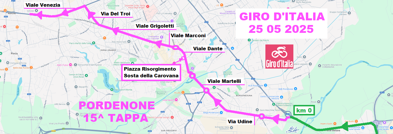 In occasione del passaggio della 15a tappa del 108° Giro d'Italia, denominata "Fiume Veneto - Asiago" (qui tutti i dettagli), programmata per domenica 25 maggio 2025, il Comune di Pordenone ha emesso un'ordinanza per disciplinare la circolazione veicolare al fine di garantire la sicurezza dei partecipanti e del pubblico e il regolare svolgimento della manifestazione sportiva.