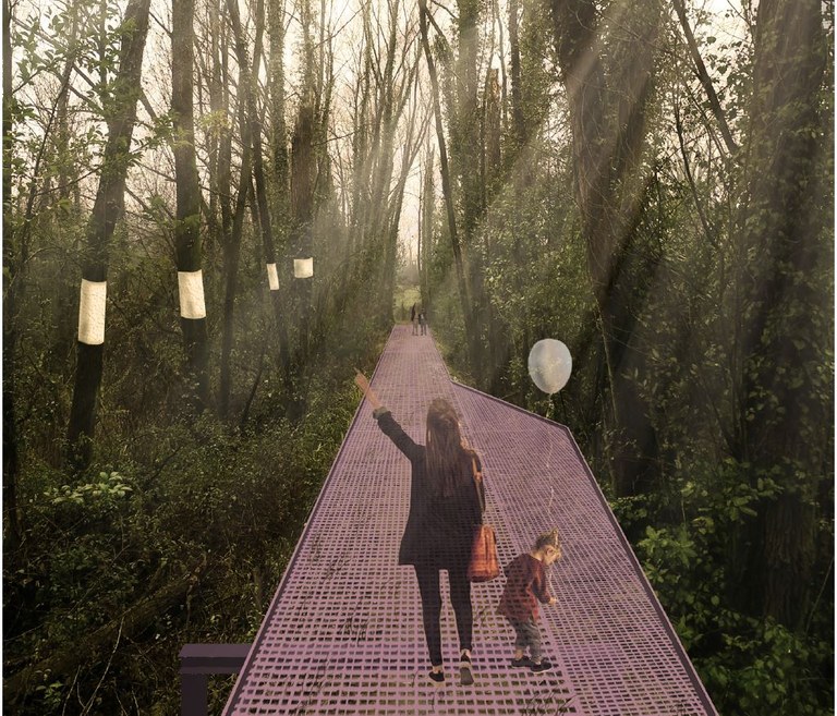 L’intervento recupera e rende accessibile un vasto spazio naturalistico dentro il quale correva il «sentiero delle operaie», il tragitto che le lavoratrici dell’ex cotonificio Amman percorrevano per andare al lavoro e ritornare a casa.
