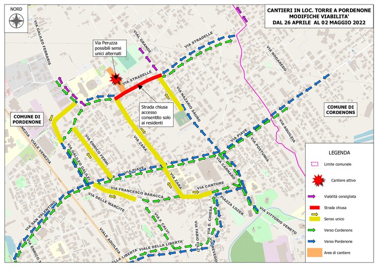 A inizio maggio alcuni possibili sensi unici alternati in via Stradelle e in via Peruzza per la realizzazione degli allacciamenti.