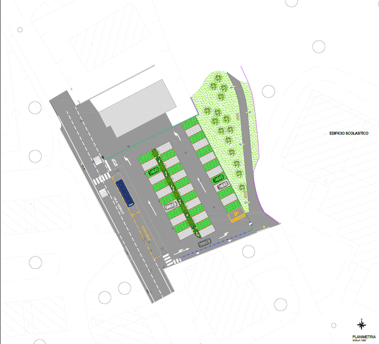 I posti disponibili nel parcheggio saranno 39, di cui uno riservato alle persone con disabilità, oltre a due fermate per gli scuolabus con la relativa banchina di approdo per gli studenti che lo utilizzano.