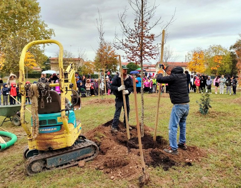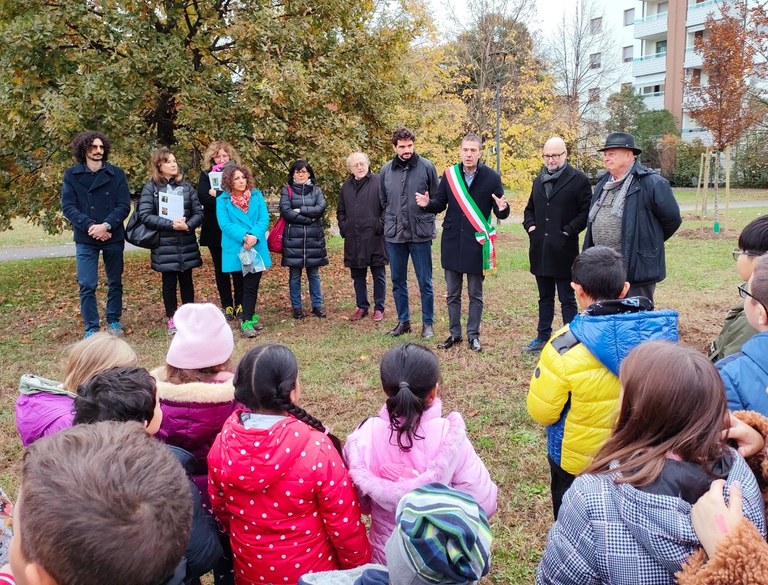 18 nuovi alberi piantati al Parco appena intitolato a "Carlo Sgorlon"