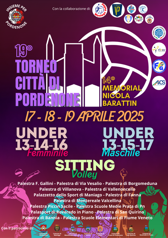 L’evento si terrà dal 17 al 19 aprile 2025 nelle strutture sportive di Pordenonese e dei comuni limitrofi, per un totale di 11 palestre.