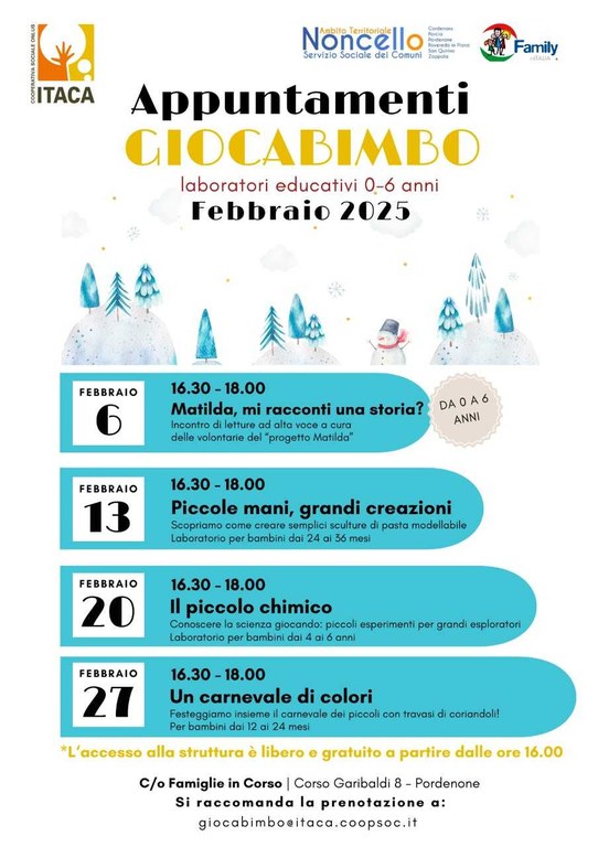 Per informazioni e prenotazioni sulle attività del Giocabimbo e gli incontri con gli esperti si può scrivere a giocabimbo@itaca.coopsoc.it.