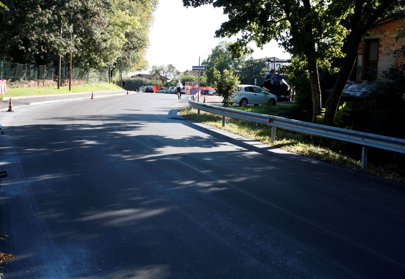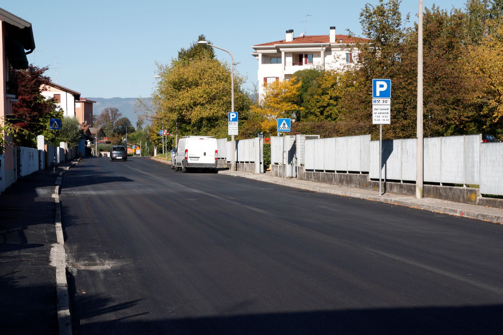In via Mantegna e in via Prasecco si sono conclusi i lavori principali di asfaltatura, che saranno completati con le finiture di asfalto a mano lungo gli edifici privati e la segnaletica orizzontale che verrà tracciata da parte della società partecipata GSM. In via Fontanazze, dopo la realizzazione del nuovo tappeto di asfalto in un tratto sensibile della viabilità cittadina, sono in corso i lavori di tracciamento delle linee divisorie della carreggiata e dei passaggi pedonali.