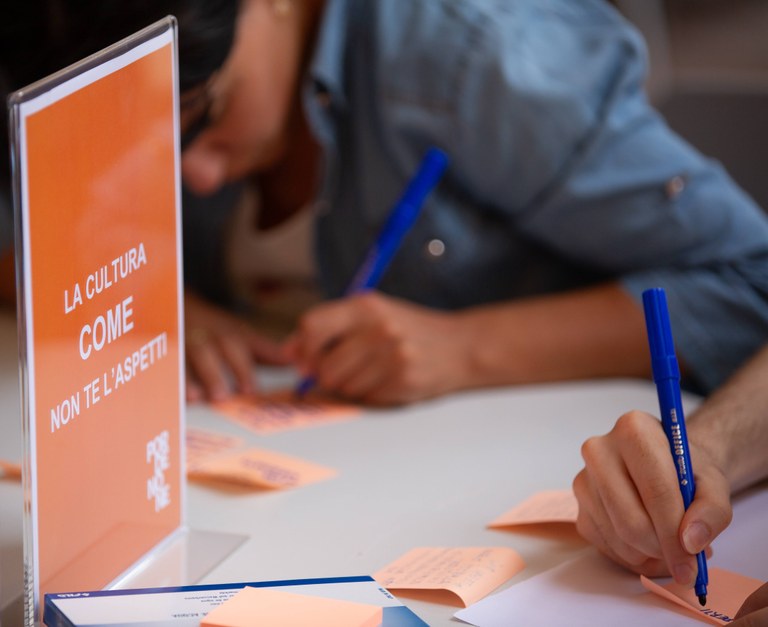 Partecipare ai tavoli di lavoro non è stato l’unico modo tramite cui le persone hanno potuto contribuire alla scrittura del dossier di candidatura. Durante le tre giornate infatti i partecipanti hanno potuto lasciare i propri videomessaggi a sostegno della città e dei contributi scritti tramite la compilazione di apposite cartoline.