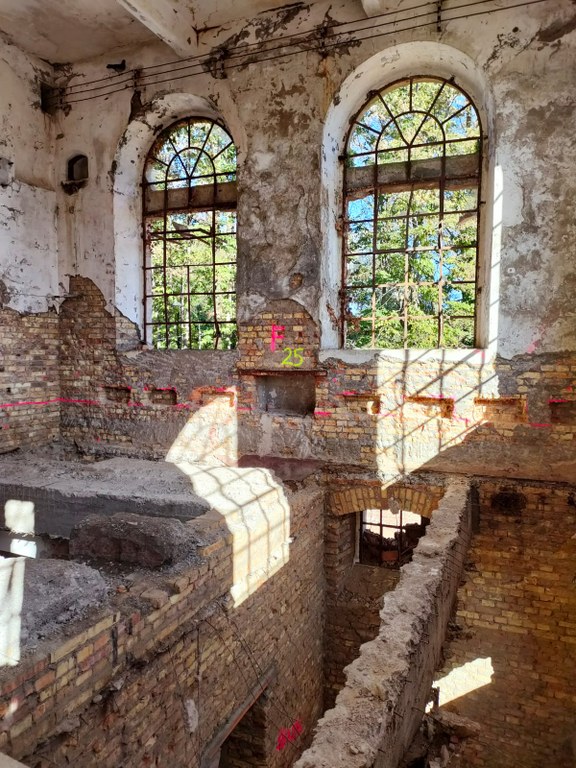 Attualmente si sta procedendo alla demolizione di alcune partizioni interne ai solai e alla loro ricostruzione al fine di ridefinire gli spazi secondo il progetto. Altri elementi di archeologia industriale saranno recuperati e valorizzati come testimonianza del passato manifatturiero di Pordenone. Un esempio è dato dall’antico montacarichi arrugginito, utilizzato in passato per la movimentazione delle bottiglie. Inoltre il colore dell’intonaco dell’edificio sarà sui toni del beige, quanto più aderente possibile a quello originale che ancora resiste su alcune pareti esterne, e creerà quindi un forte legame con quello che il Birrificio era a fine Ottocento.