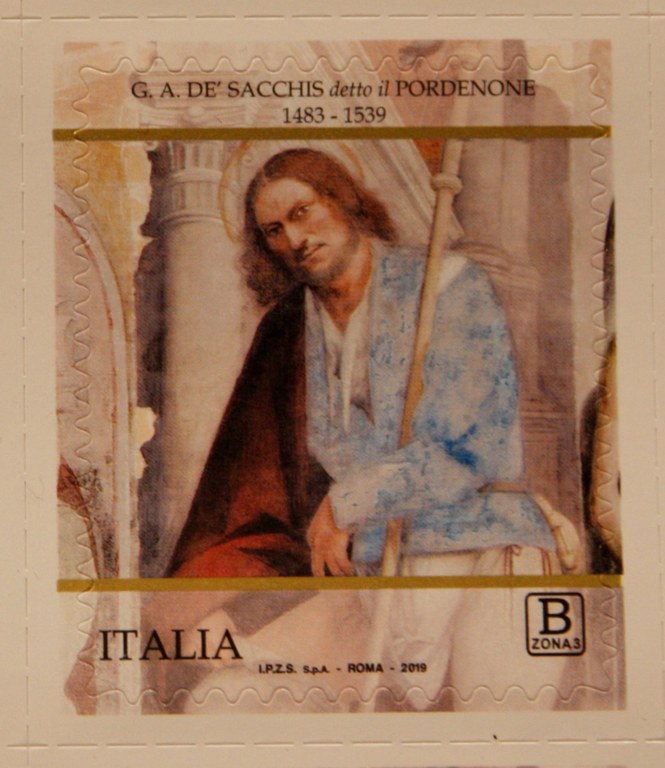 In occasione della mostra “Il Rinascimento di Pordenone”, voluta dall’Amministrazione Comunale di Pordenone per valorizzare la figura e l’opera di Giovanni Antonio de’ Sacchis, in corso fino al 2 febbraio 2020, il 23 novembre 2019 il Ministero dello Sviluppo Economico ha emesso un francobollo ordinario appartenente alla serie tematica “il Patrimonio artistico e culturale italiano” dedicato all’artista pordenonese. Il francobollo è stato presentato pubblicamente sabato 23 novembre alle 11 al Museo Civico d’Arte, dove Poste Italiane ha allestito un ufficio postale distaccato, per la vendita del francobollo e l’annullo postale primo giorno di emissione. Contestualmente il Centro Filatelico Numismatico Pordenonese ha distribuito un cofanetto contenente 8 cartoline ricordo con le immagini delle opere realizzate dal de’ Sacchis a Pordenone.