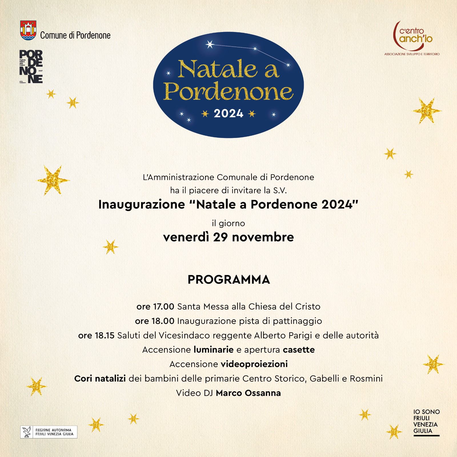 Invito all'inaugurazione del Natale a Pordenone 2024