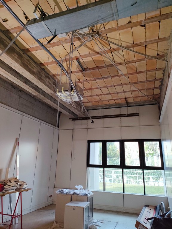 Al piano interrato, dove si trovano i garage, sono state demolite varie pareti separatorie, cosicché il locale risulta molto più ampio e fruibile dalle auto di servizio della Municipale. Le demolizioni hanno riguardato anche i bagni del primo piano, che dovranno essere completamente rifatti, ed alcune strutture in muratura in quello che sarà l’ufficio del comandante. Anche al secondo piano si sta abbattendo l’intero blocco dei servizi igienici, al posto dei quali saranno realizzate le celle di sicurezza. Su questo piano sono state smontate inoltre le pareti di alcuni locali che cambieranno destinazione, divenendo sala di controllo. Al piano terra è in fase di completamento l’impianto di climatizzazione, opera che proseguirà poi sugli altri due piani. L’impianto elettrico è stato rifatto al primo e al secondo piano, mentre a breve inizierà il completamento di quello al piano terra. Anche la rete dati è pronta per l’installazione, con tutti i cavi già stesi e predisposti per i collegamenti con la sala di controllo. Infine, nei prossimi giorni inizierà la demolizione del manto di copertura del tetto e la rimozione dei vecchi basamenti. Si procederà quindi alla posa dell’isolamento di copertura con le guaine definitive.