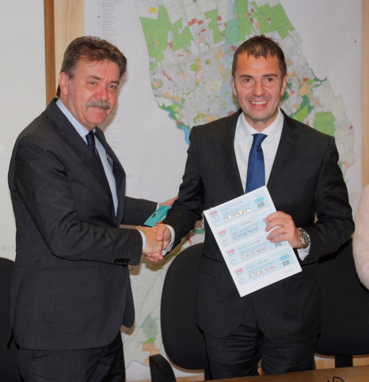 Oggi in Municipio il presidente del Lions Club Pordenone Naonis avv. Pierfrancesco Scattà ha consegnato al sindaco Alessandro Ciriani i buoni spesa della Coop che il sodalizio li ha acquistato con i fondi raccolti in occasione della decima edizione del Galà di musica e solidarietà curata dal maestro Gianni Fassetta che si è tenuto in febbraio al teatro G. Verdi.