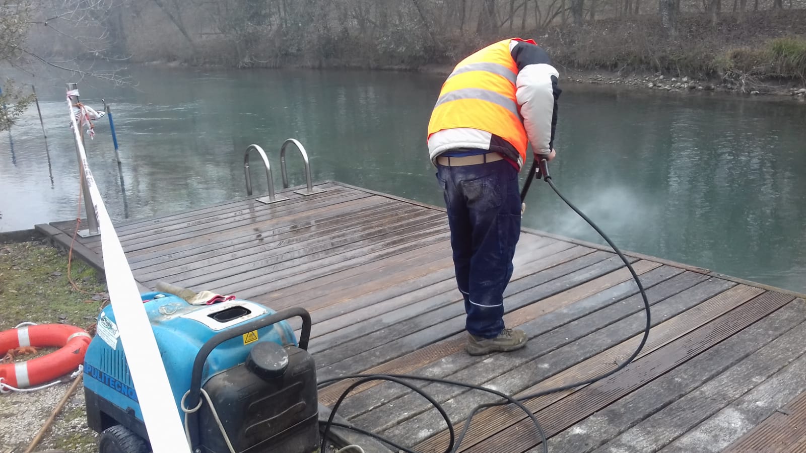 In questi giorni inoltre si stanno effettuando pulizie e manutenzioni anche nel sottopasso A.N.A. il percorso di accesso pedonale che da via Codafora porta all’imbarcadero e nei prossimi giorni si interverrà sulle staccionate. Anche qui saranno sostituite le barre di legno danneggiate o deteriorare dal tempo e poi si provvederà alla stesura dell’impregnate .