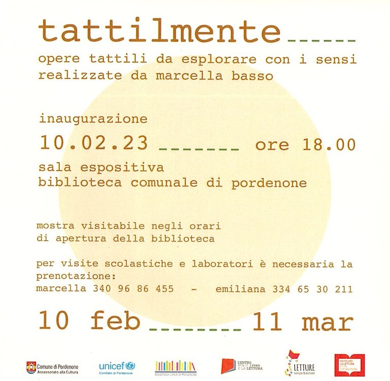 Mostra “Tattilmente”: opere tattili in Biblioteca https://old.comune.pordenone.it/it/comune/comunicazione/comune-informa/stampa/area-stampa/mostra-201ctattilmente201d-opere-tattili-in-biblioteca https://old.comune.pordenone.it/@@site-logo/logo.png Mostra “Tattilmente”: opere tattili in Biblioteca Data 14 febbraio 2023 Allegati CS TATTILMENTE.pdf — 36.3 KB Immagini scarica scarica scarica scarica scarica