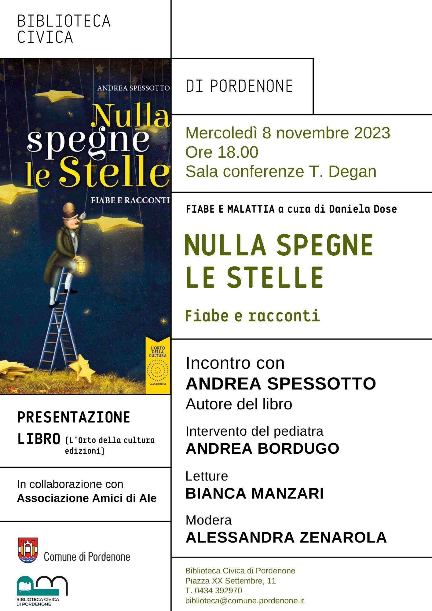 Mercoledì 8 novembre alle ore 18:00 in Sala Degan della Biblioteca civica di Pordenone verrà presentato il libro di fiabe “Nulla spegne le stelle” (ed. L’orto della cultura) di Andrea Spessotto, fondatore del Naonis Basket.