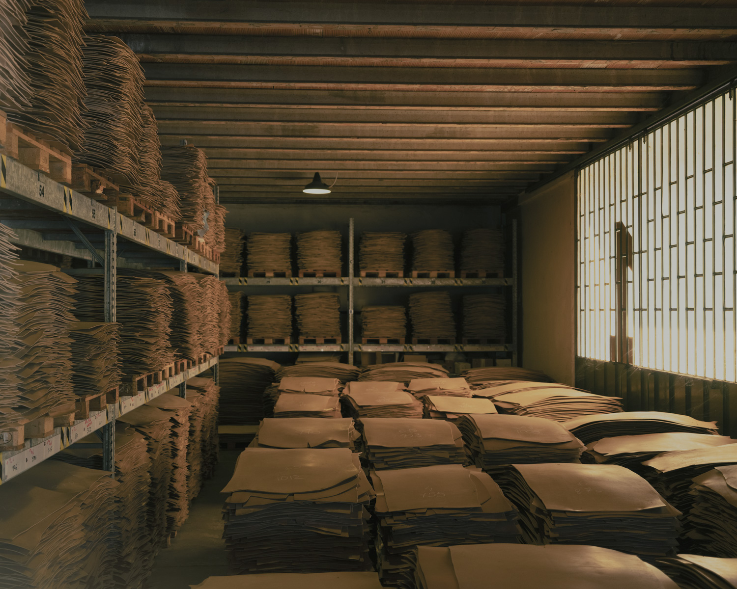 Il fotografo Balsamini esplora gli ambienti della conceria - che dal 1932 produce cuoio da suola usando prevalentemente acqua e tannini vegetali - realizzando fotografie, con protagonisti mani al lavoro, utensili, pelli, il vecchio edificio e la natura dirompente che lo circonda, che oscillano fra concretezza e astrazione fino a sfiorare il linguaggio dell’arte concettuale.
