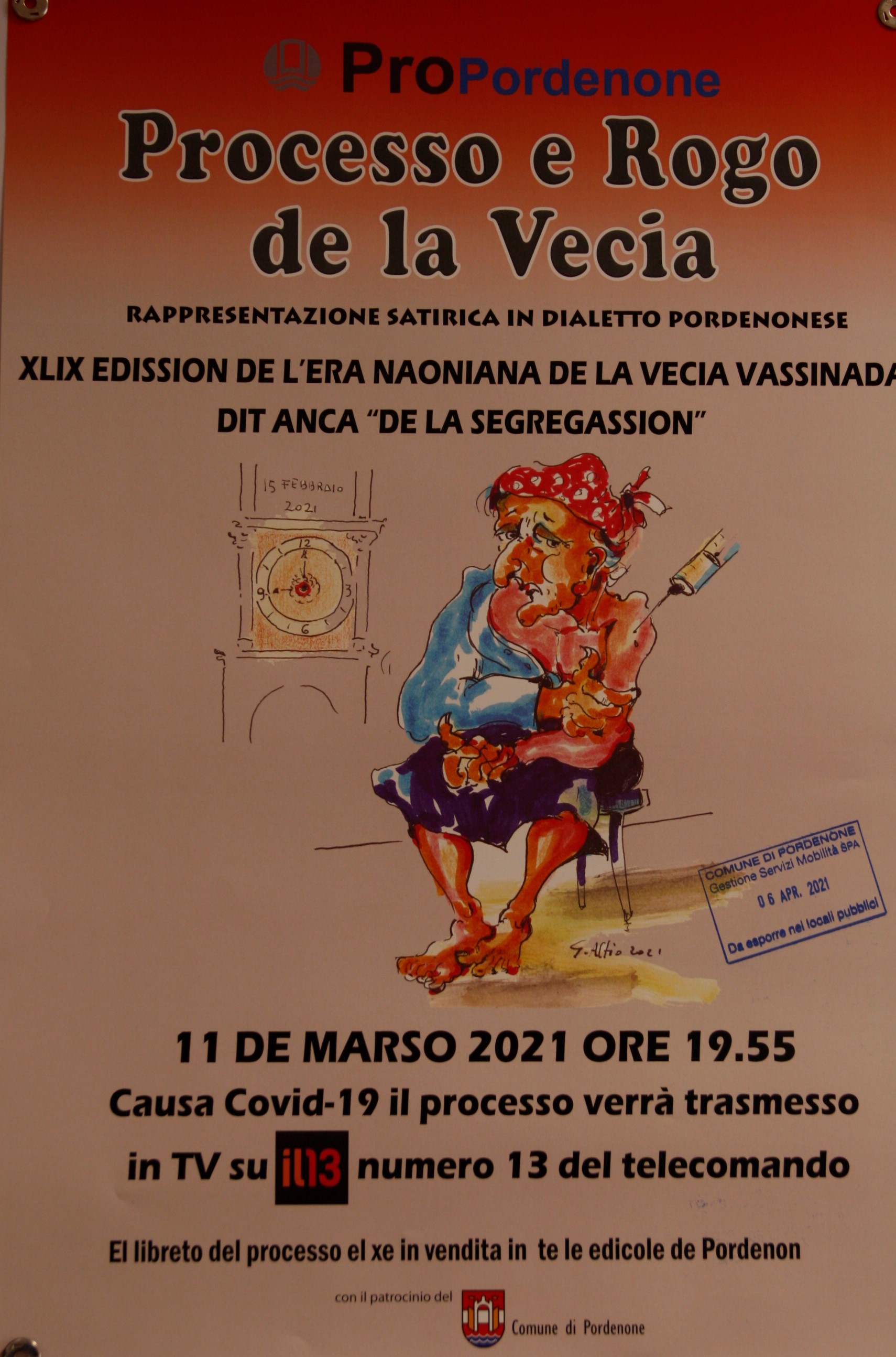 Nel ribadire che le tradizioni vanno conservate, anche se si dovesse “brusar un paese” …., oggi in municipio è stata presentata la 49 edizione del “Processo e Rogo de la Vecia”. A causa dell’emergenza epidemiologia, la rappresentazione teatrale non si terrà in “presenza” ma, in modo inedito, sarà proposta in Tv sull’emittente “Il 13”, giovedì 11 marzo alle ore 19.55.