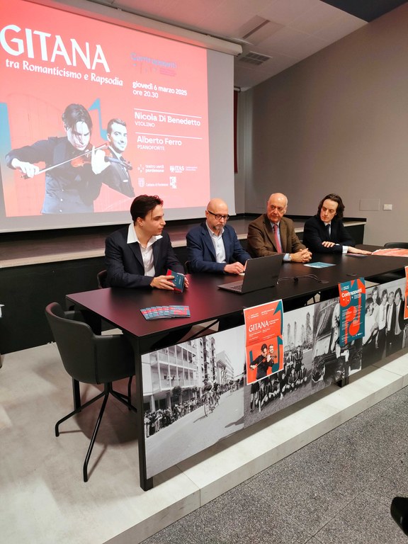 A parlarne sono stati quest’oggi il vicesindaco reggente Alberto Parigi, il presidente del Teatro Verdi Giovanni Lessio e il Consulente musica del Teatro Alessandro Taverna. È stata l’occasione per presentare il giovane violinista Nicola Di Benedetto, che si esibirà durante la serata del 6 marzo, accompagnato dal Maestro pianista Alberto Ferro, due giovani promesse della musica classica.