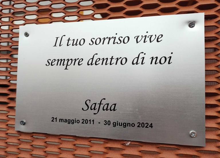 «Questa targa – afferma il vicesindaco Parigi – dimostra che Safaa non verrà mai dimenticata. È un bellissimo gesto d’amore da parte dei ragazzi dei Centri Giovanni che ci mostrano come le emozioni, i buoni sentimenti e l'amicizia sono alla base di tutto. Il messaggio che oggi Safaa ci lancia è che dobbiamo superare i conflitti, i contrasti, e cercare di vivere in armonia, in questo come in tutti i quartieri, e più in generale nella nostra comunità».